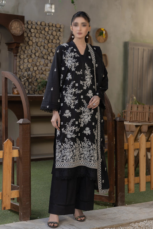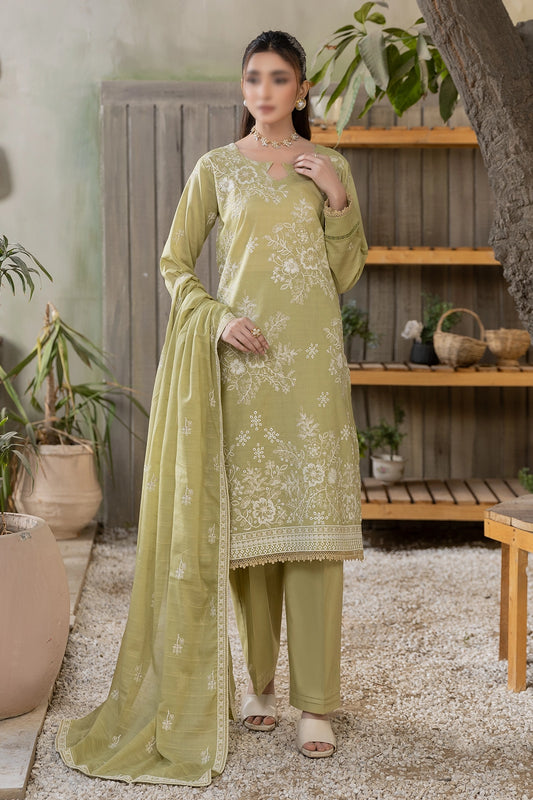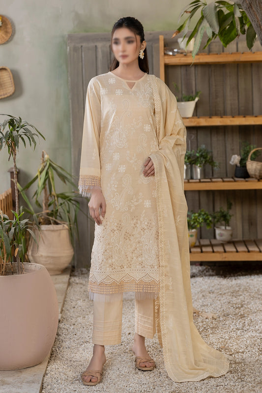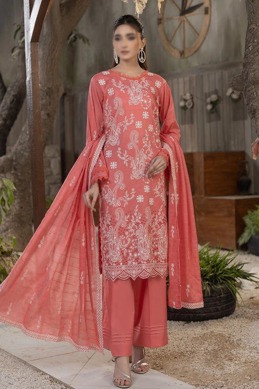 3 Piece - Embroidered Slub Lawn - Reet 107
