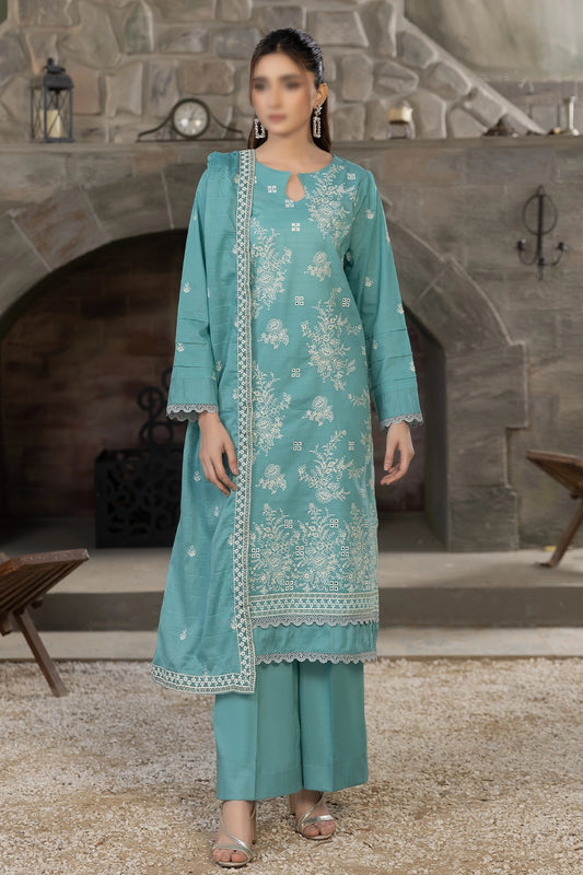 3 Piece - Embroidered Slub Lawn - Reet 103
