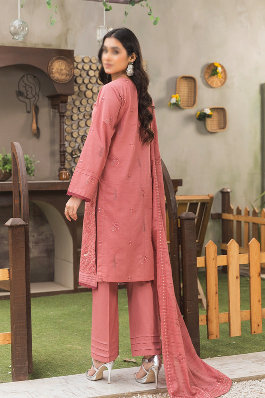 3 Piece - Embroidered Doriya Lawn - Peach 105