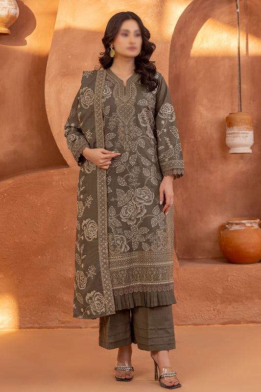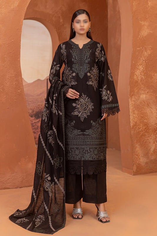 3 Piece - Embroidered Lawn Slub Karandi - Suffuse 105
