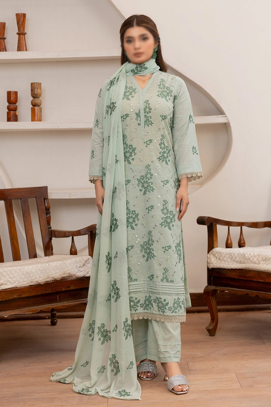 3 Piece - Embroidered Lawn Slub Karandi - Nafees 107