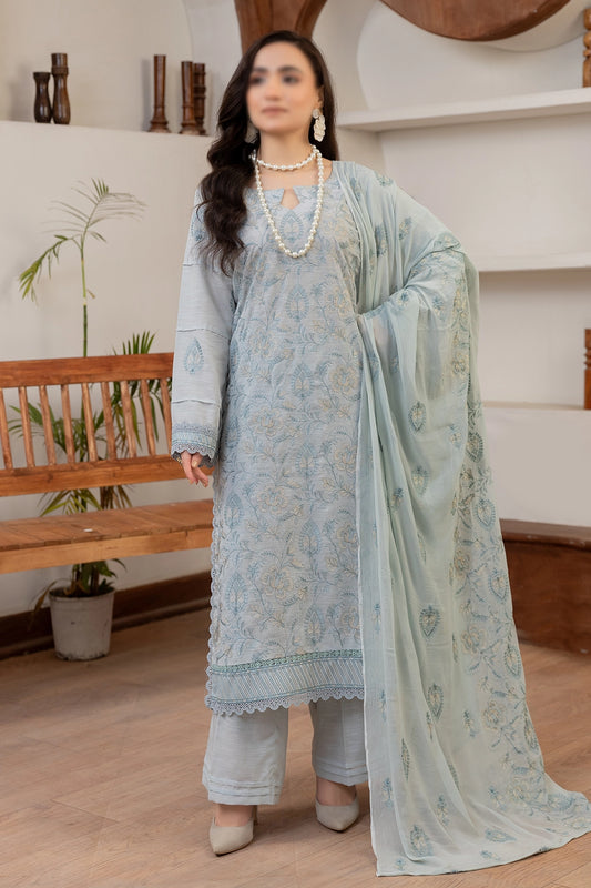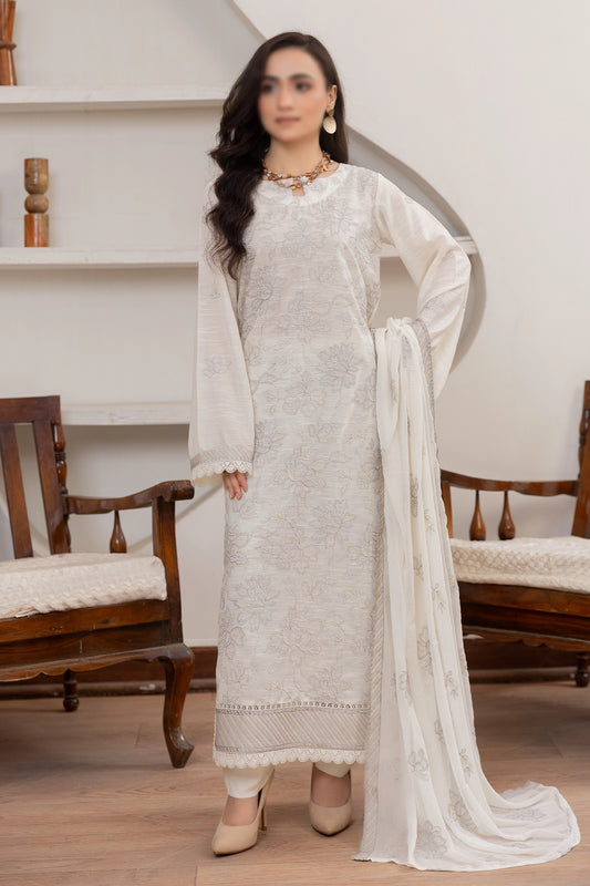 3 Piece - Embroidered Lawn Slub Karandi - Nafees 104