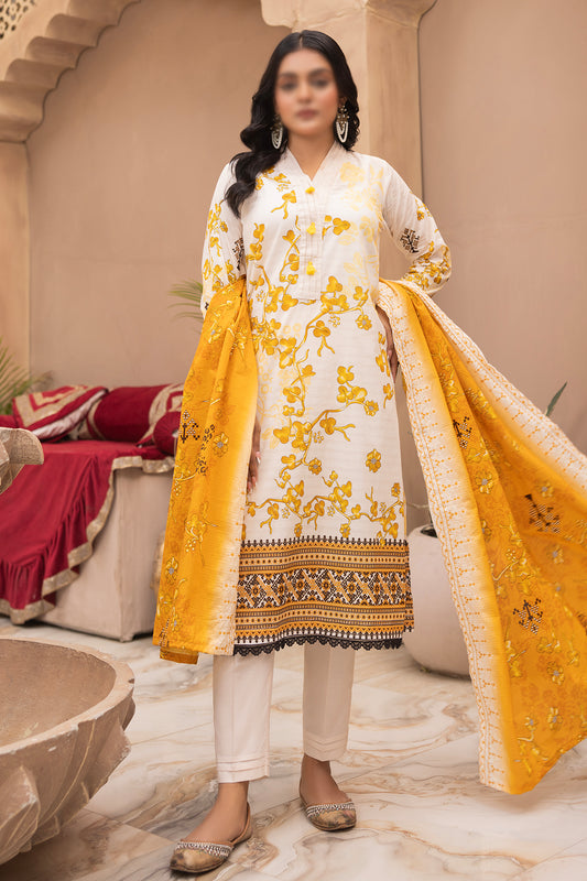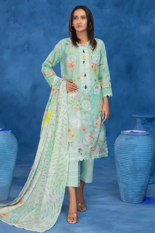 3 Piece - Digitally Printed Lawn - Nureh 1203