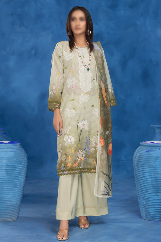 3 Piece - Digitally Printed Lawn - Nureh 1204
