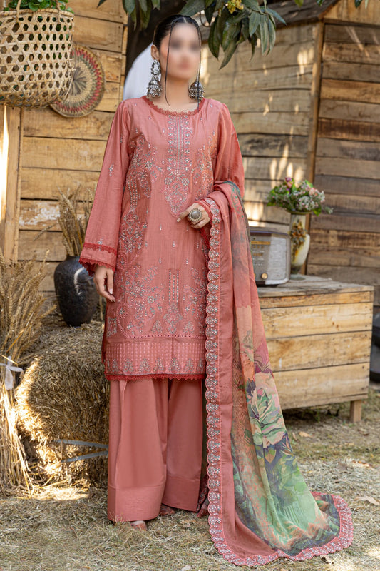 3 Piece - Embroidered Lawn - Farasha 107
