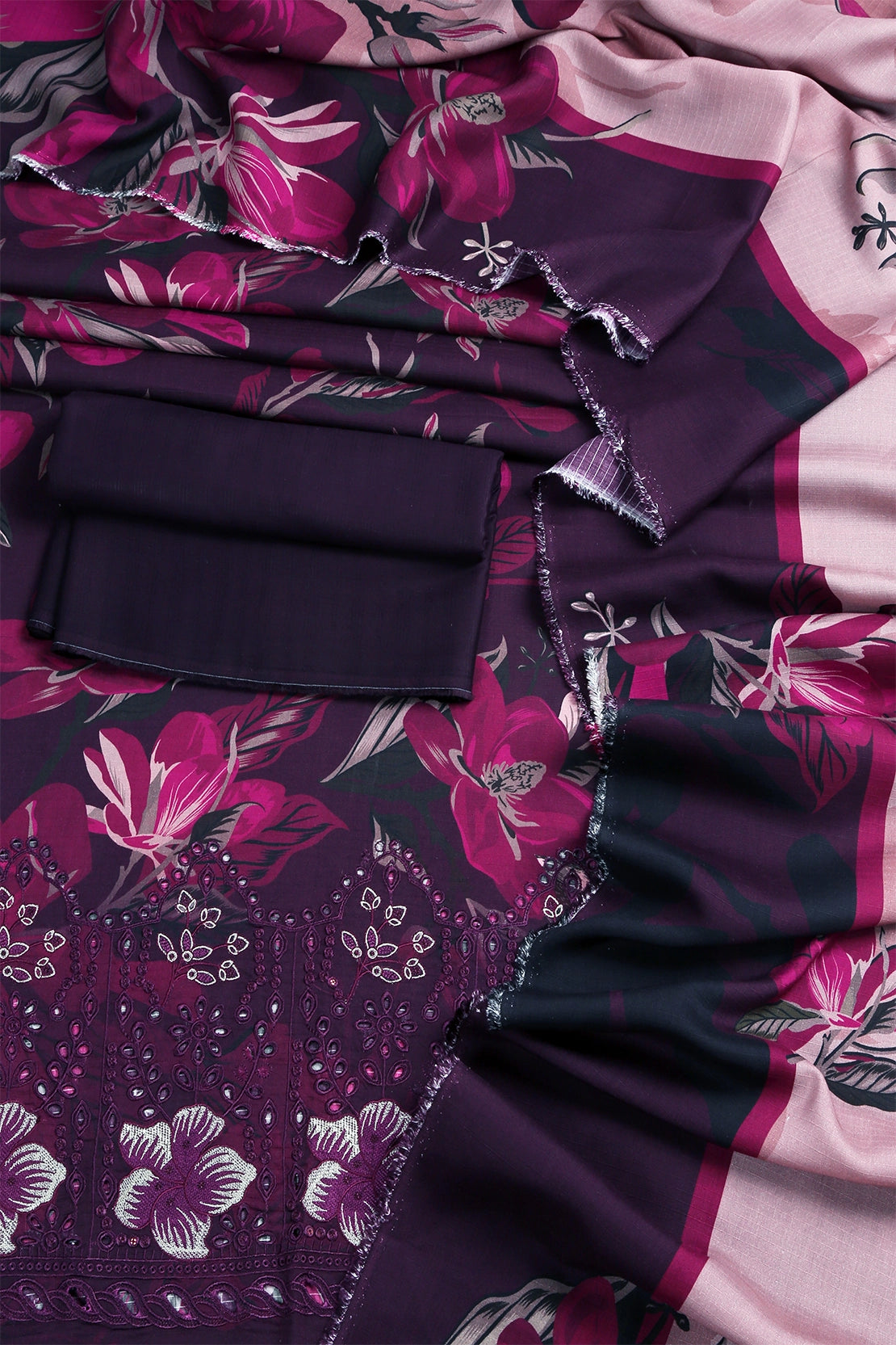 Shirt: Doriya Linen, Daman Embroidered - (3 Meter)