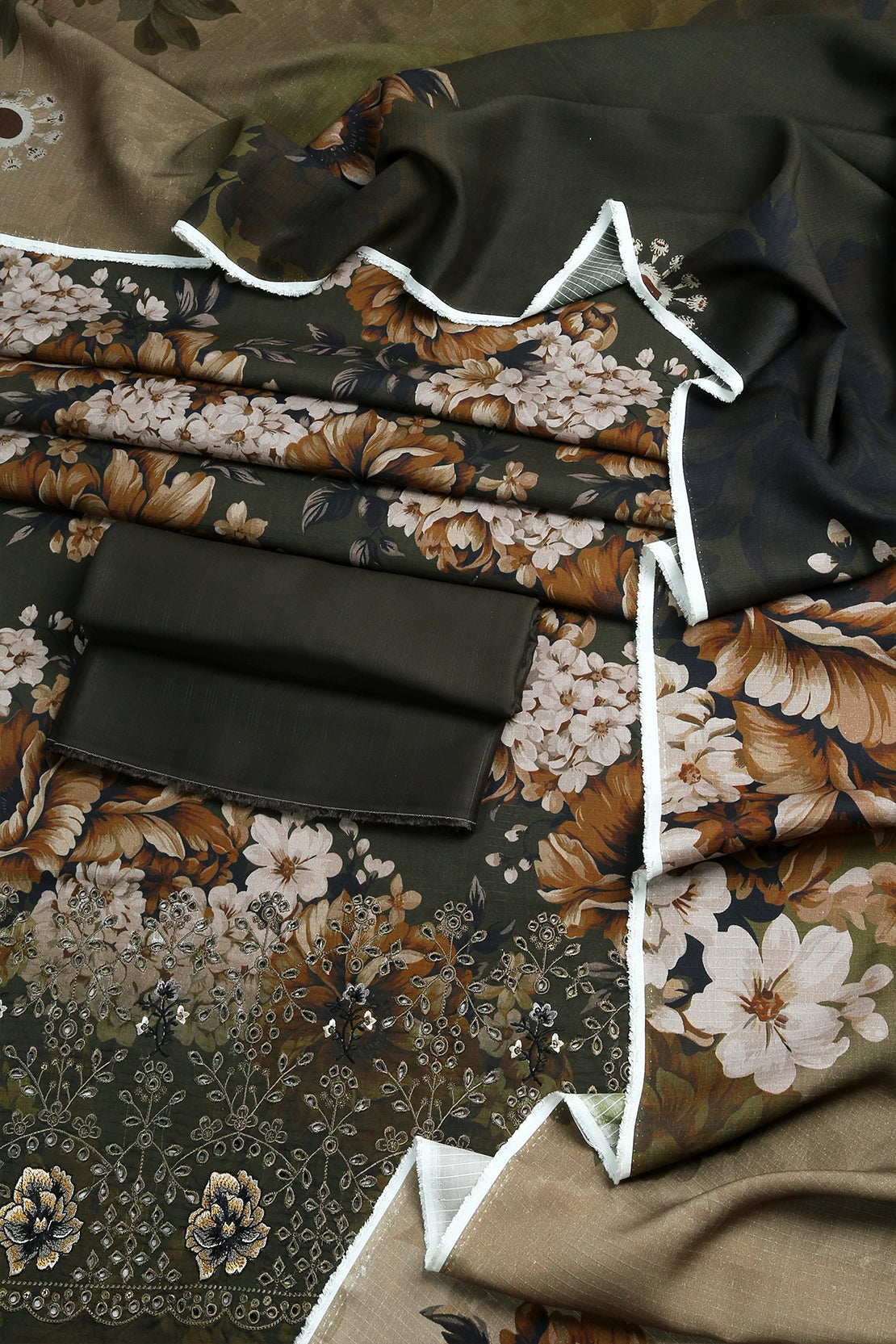 Shirt: Doriya Linen, Daman Embroidered - (3 Meter)