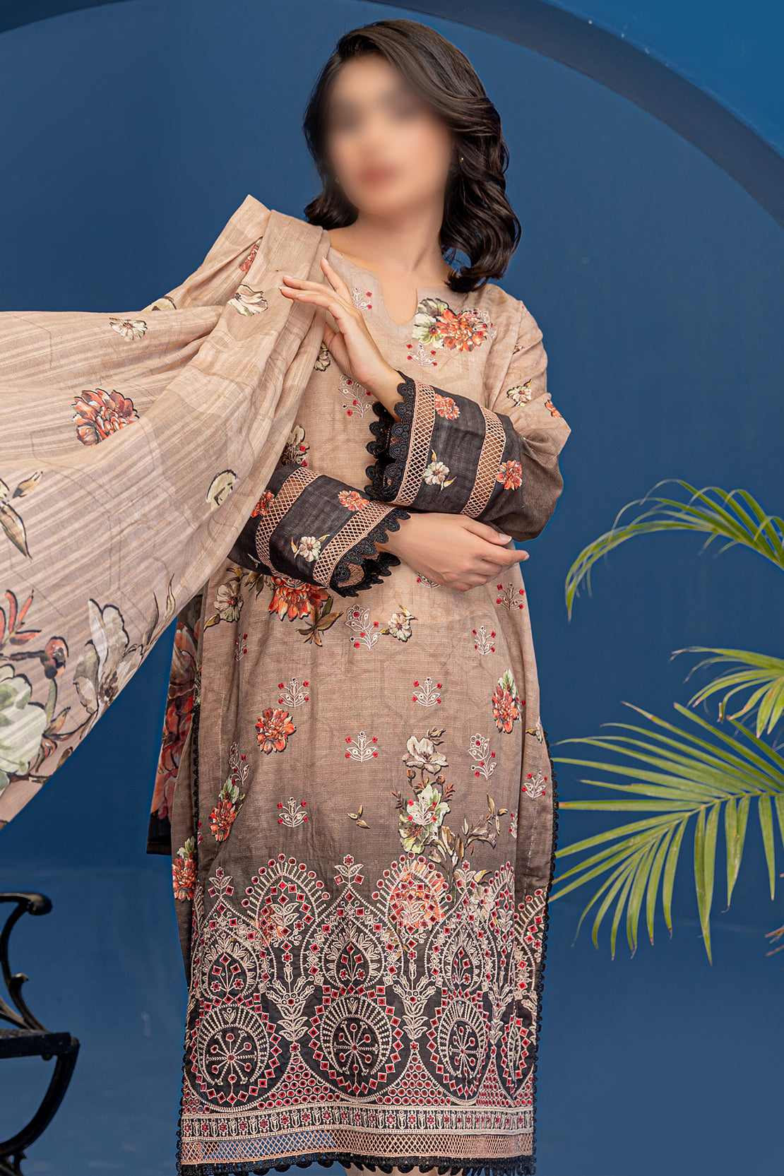 Shirt: Digital Printed Embroidered Doriya Lawn