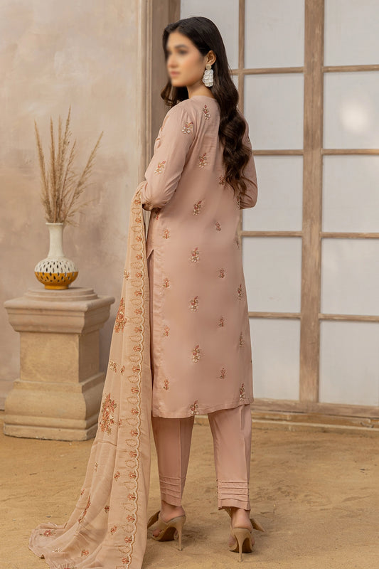 3 Piece - Embroidered Doriya Lawn - Peach 106