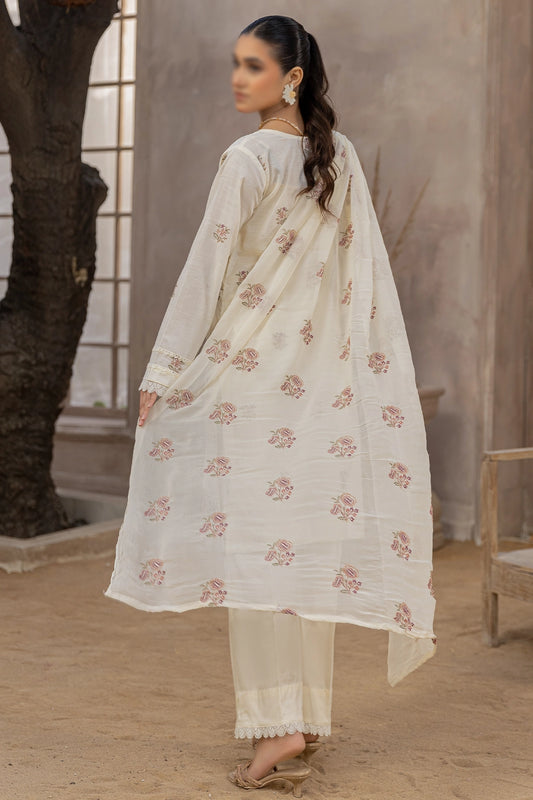 3 Piece - Embroidered Lawn Slub - Nafees 203